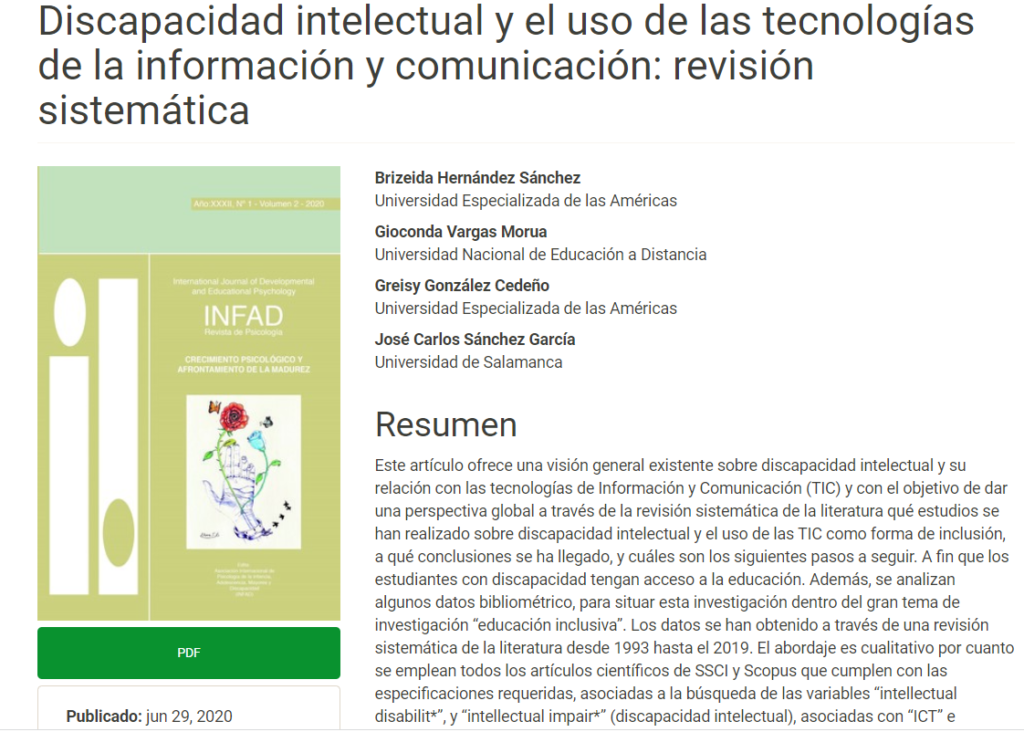 La investigación Presencia, uso y utilidad de herramientas en personas con discapacidad, PROYECTO ITE-18-R1-004 en la Prensa Nacional. Personas con discapacidad: acceso […]